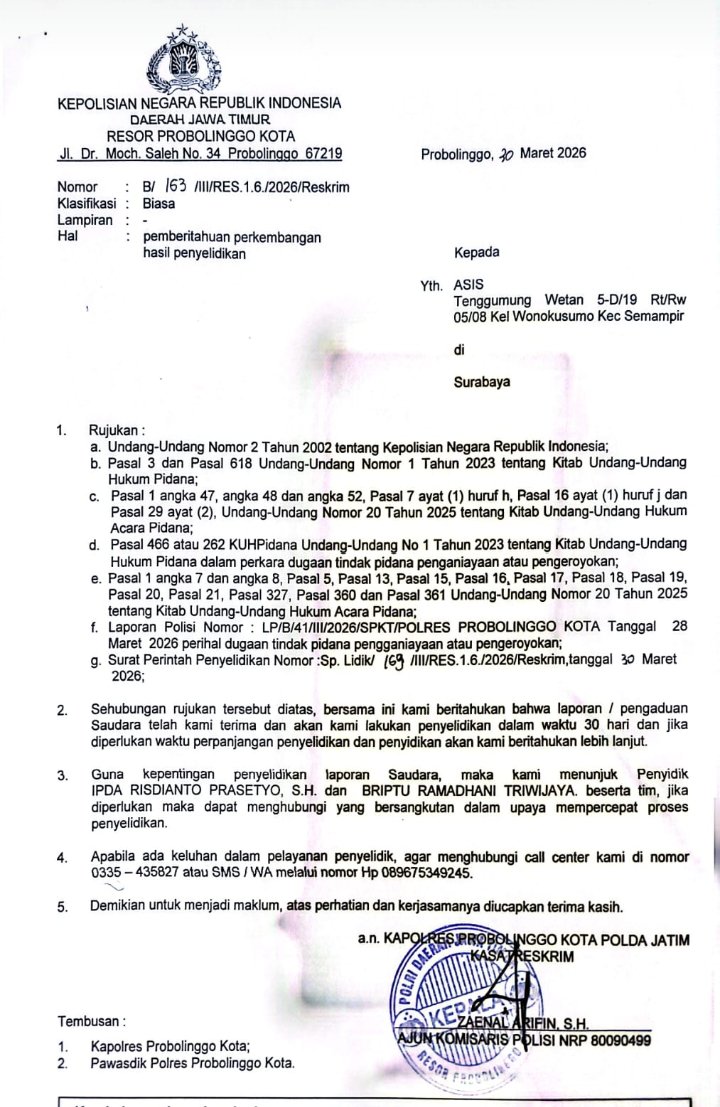 Menanggapi hal ini, advokat Jawa Timur, Bung Taufik, secara tegas mendorong jajaran Polres Probolinggo Kota, khususnya kepada Kasat Reskrim, untuk segera mengambil langkah cepat dan terukur.