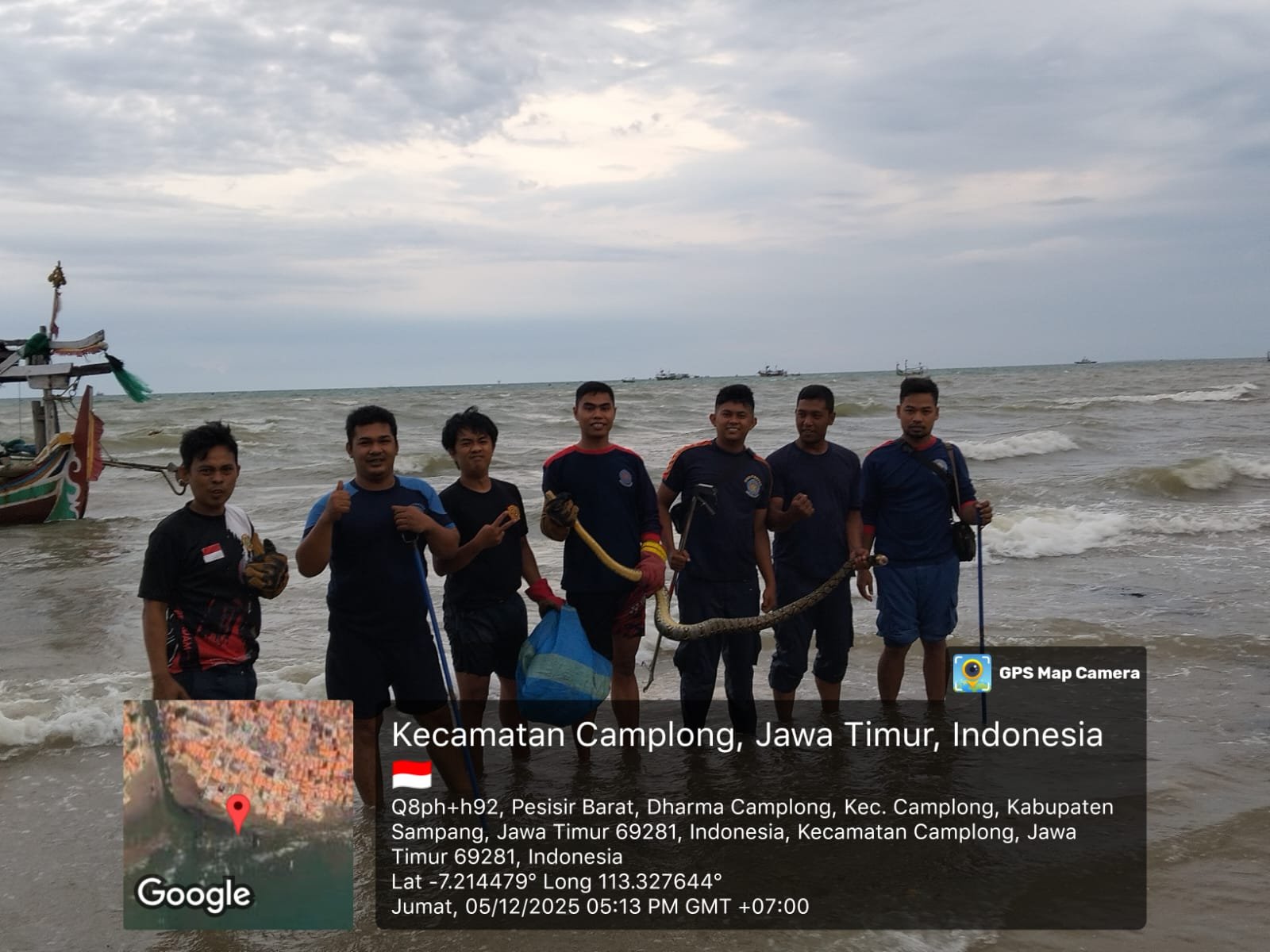 Laporan tersebut diterima pada pukul 17.09 wib, dari seorang warga Desa Camplong, atas nama Naufal, yang melaporkan adanya keberadaan ular di dalam kapal miliknya.