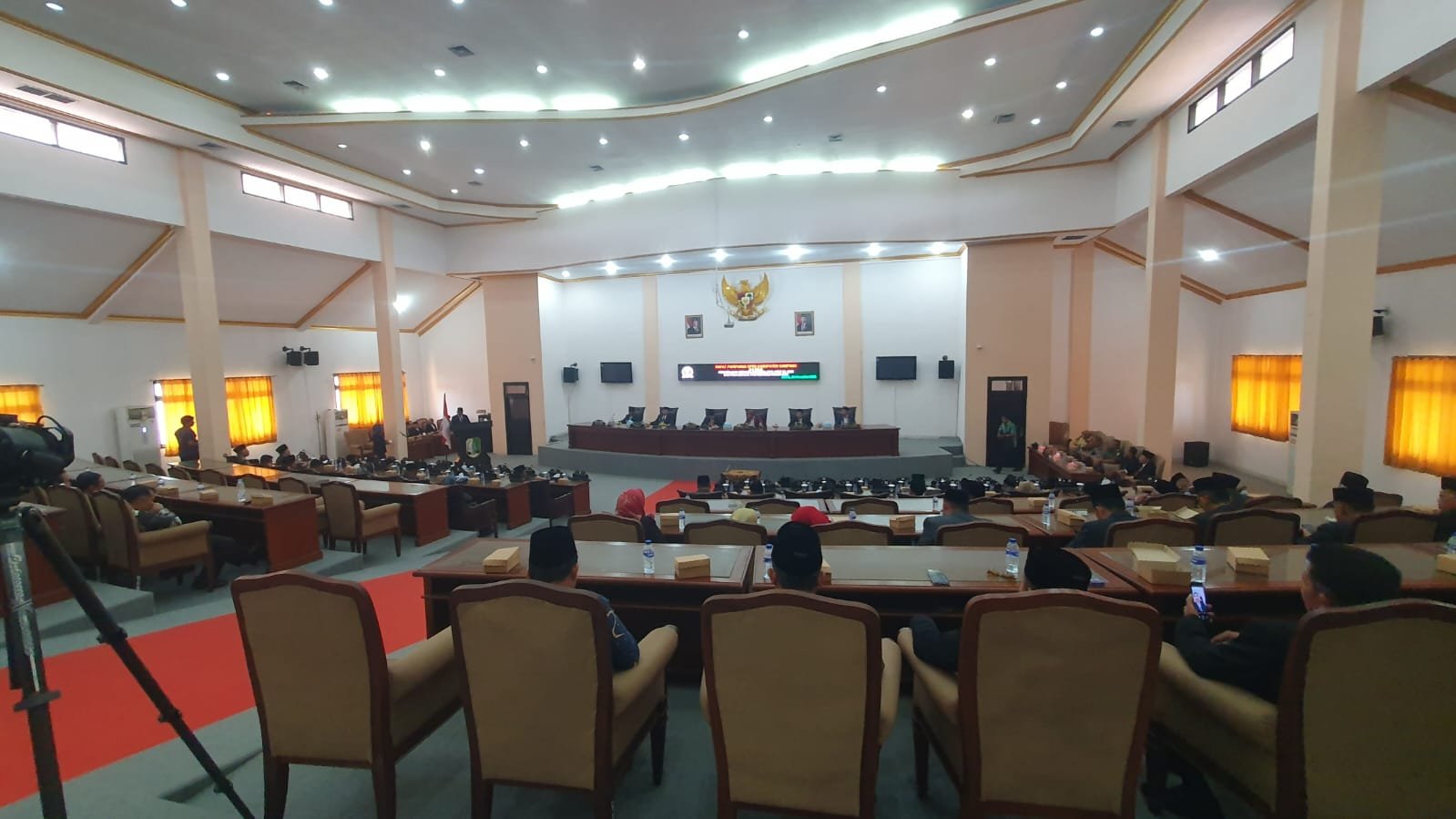 Rapat paripurna DPRD Kabupaten Sampang, Madura JawaTimur, untuk mengesahkan /persetujuan bersama Raperda atas APBD TA. 2026 dan penyampaian Propemperda TA. 2026, Jum’at (28/11/2025), di ruang Graha Paripurna DPRD Sampang.