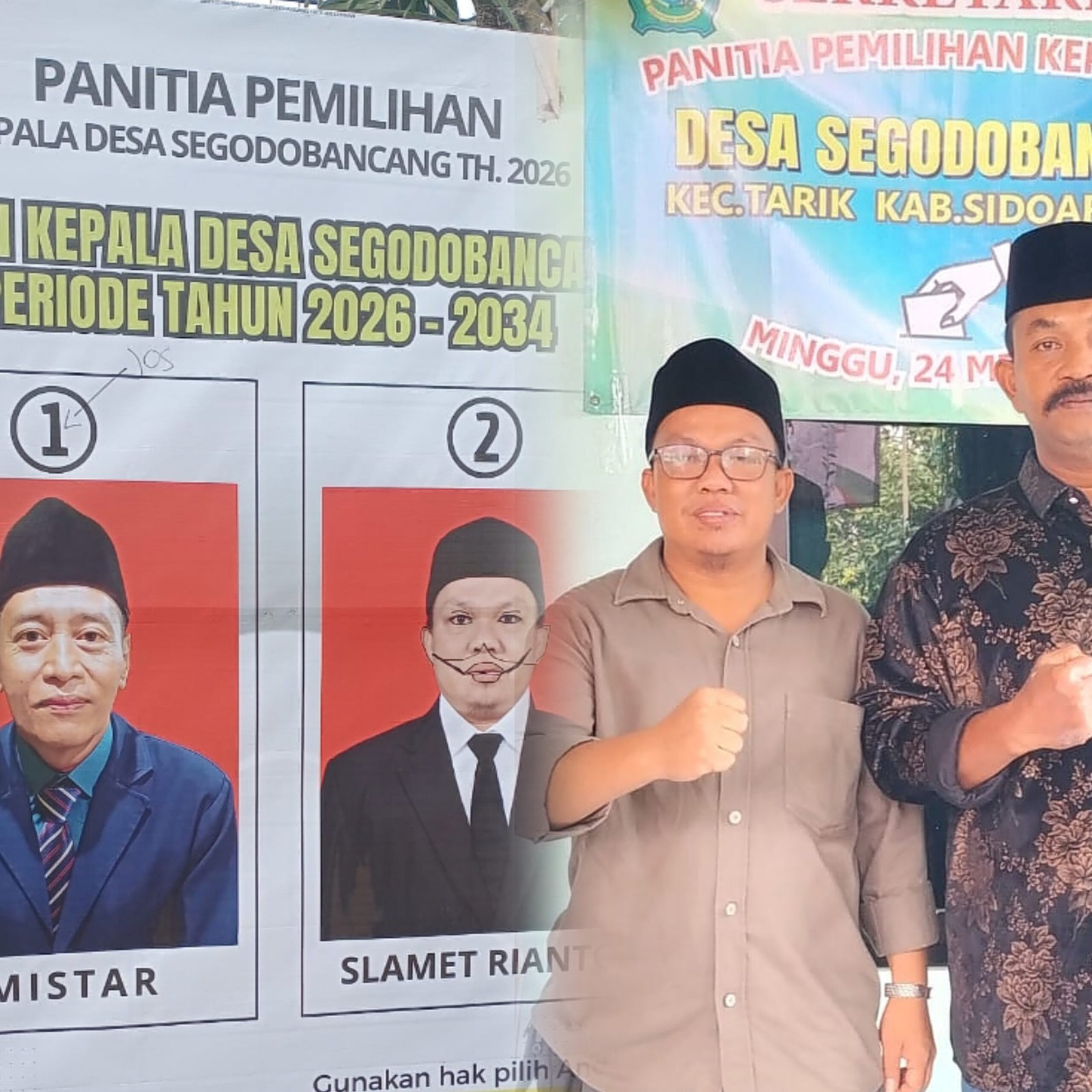 SEPUTAR HUKUM INDONESIA SIDOARJO Jawa Timur – Forum Pemuda Madura Indonesia (FPMI) Sidoarjo mengecam tindakan tidak terpuji yang terjadi dalam proses pemilihan Kepala Desa (Pilkades) di Desa Segodobancang, Kecamatan Tarik, Sidoarjo. Tindakan pencoretan poster kampanye calon kepala desa nomor urut 2, Slamet Rianto, dianggap sebagai pelanggaran etika demokrasi yang serius.