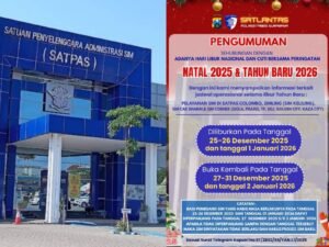 “Mengacu Surat Telgram Kapolri No : ST/2802/XXII/YAN.I.I/2026, pada hari Kamis, 25 Desember 2025: Hari Raya Natal (Libur Nasional). Jumat, 26 Desember 2025: Cuti Bersama Natal,” ucapnya.