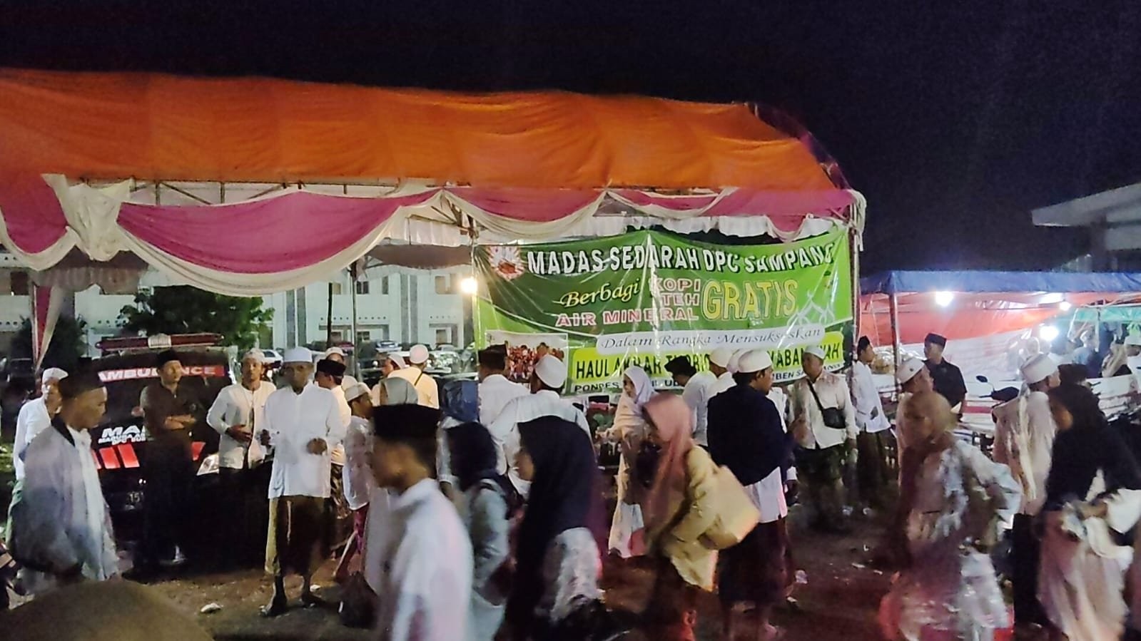 Madas Sedarah DPC Sampang Ngalap Barokah, Sambut Ratusan Jamaah Dengan Air , Teh Dan Kopi Gratis.