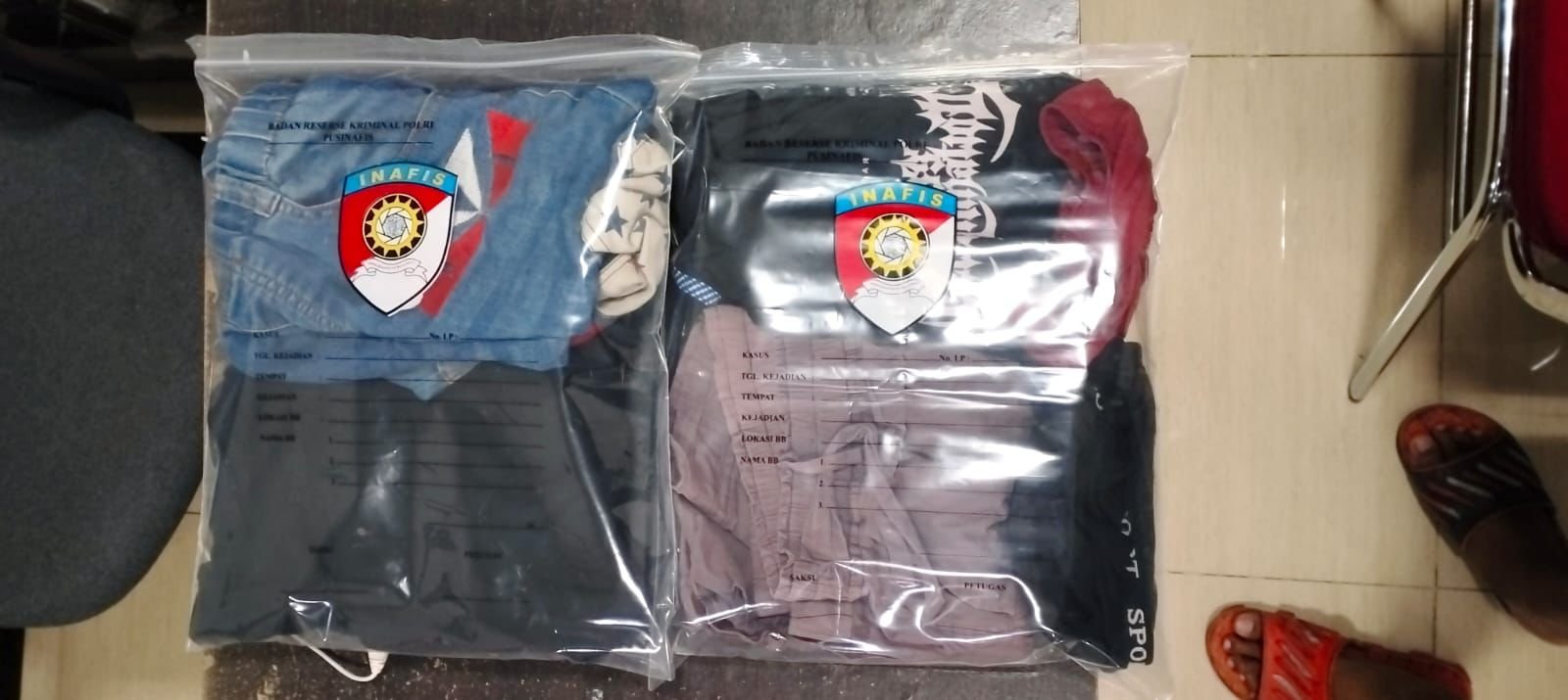 Tim Unit Perlindungan Perempuan dan Anak (PPA) Satreskrim Polres Gresik turut mengamankan sejumlah barang bukti berupa pakaian yang digunakan korban dan tersangka saat kejadian.