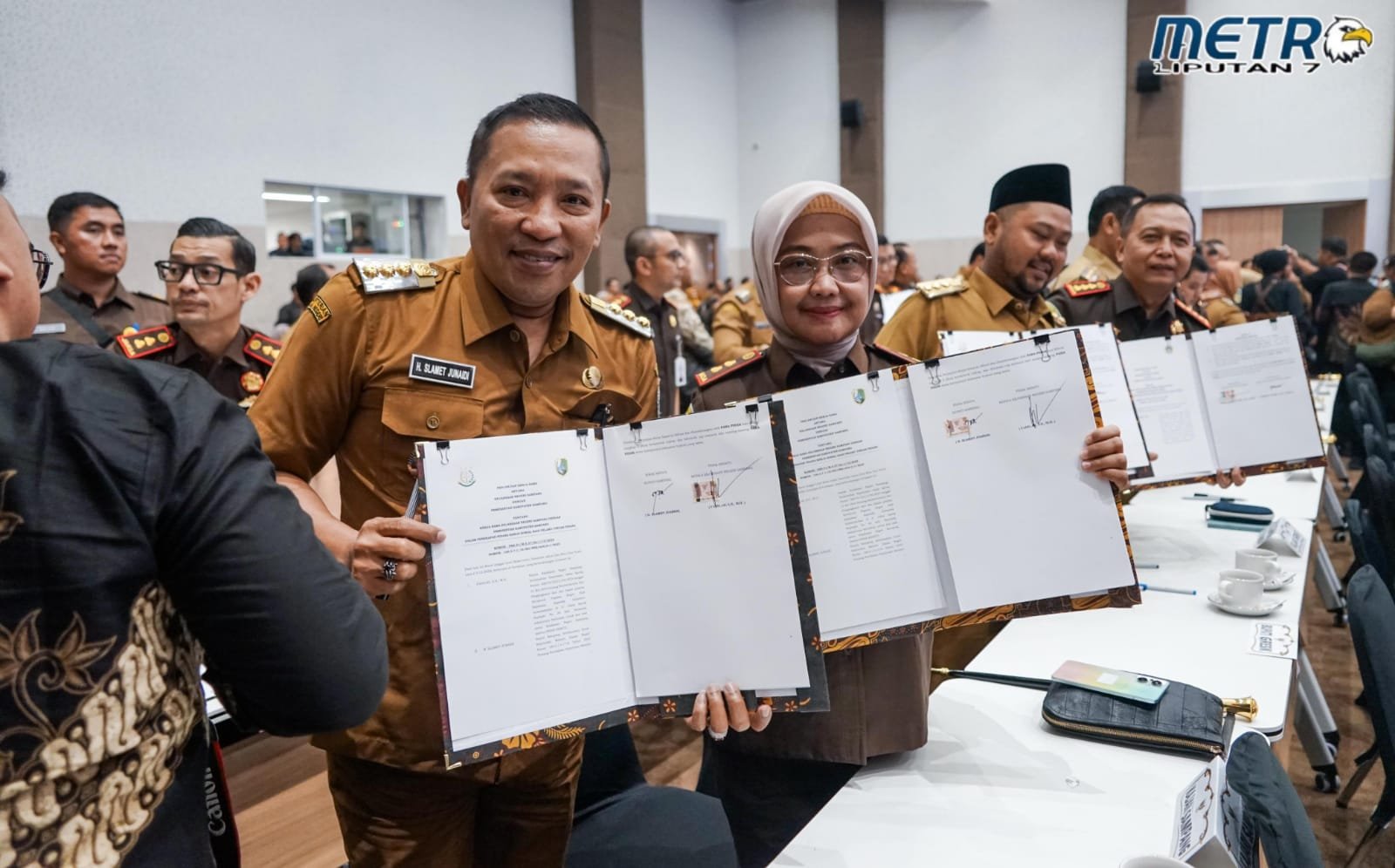 Pemerintah Provinsi Jawa Timur bersama Kejaksaan Tinggi Jawa Timur menandatangani Nota Kesepahaman (MoU) penguatan sinergi penegakan hukum sekaligus menggelar bimbingan teknis (capacity building) bertema restorative justice di kota Surabaya, Senin (15/12/2025).